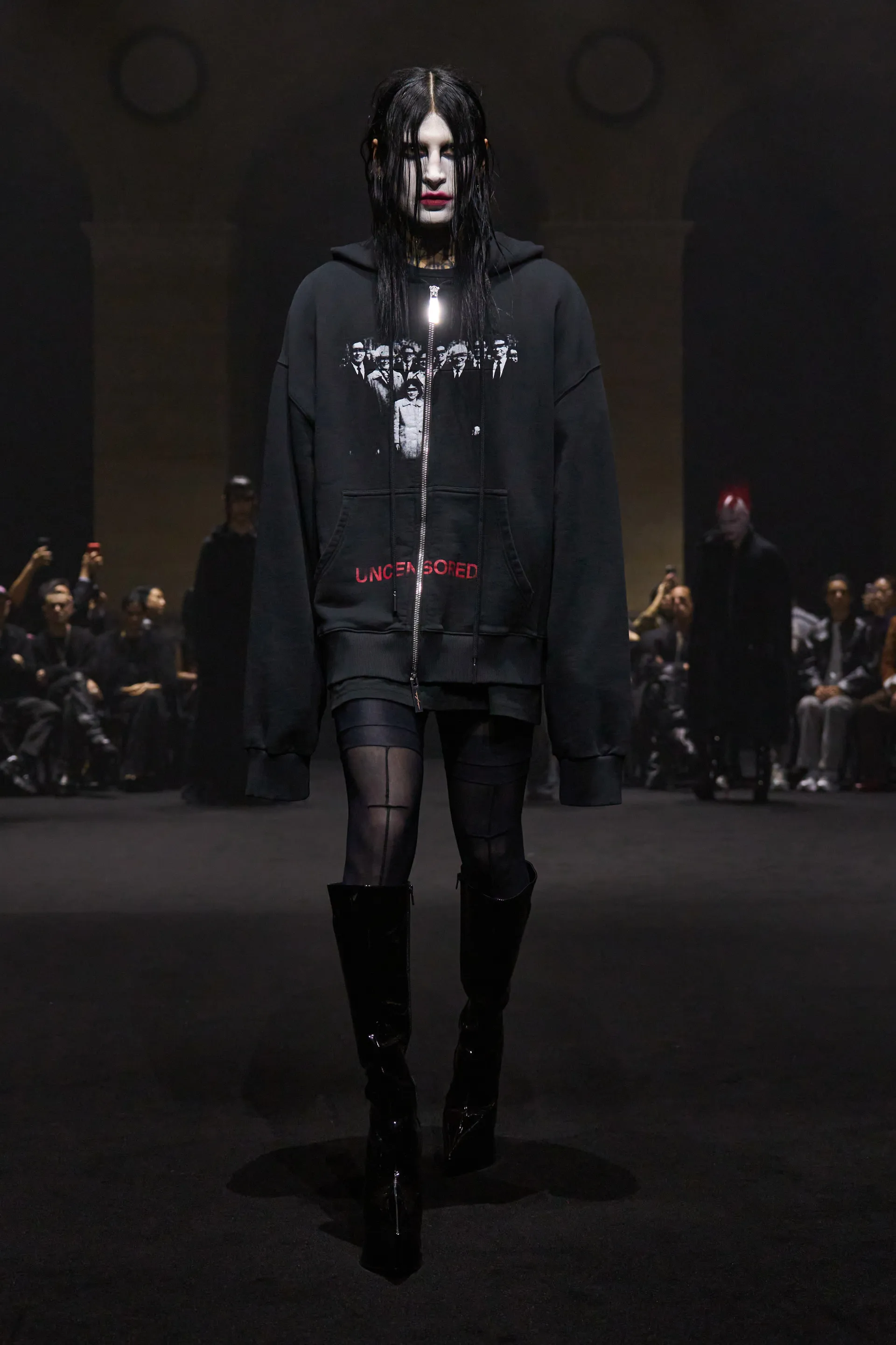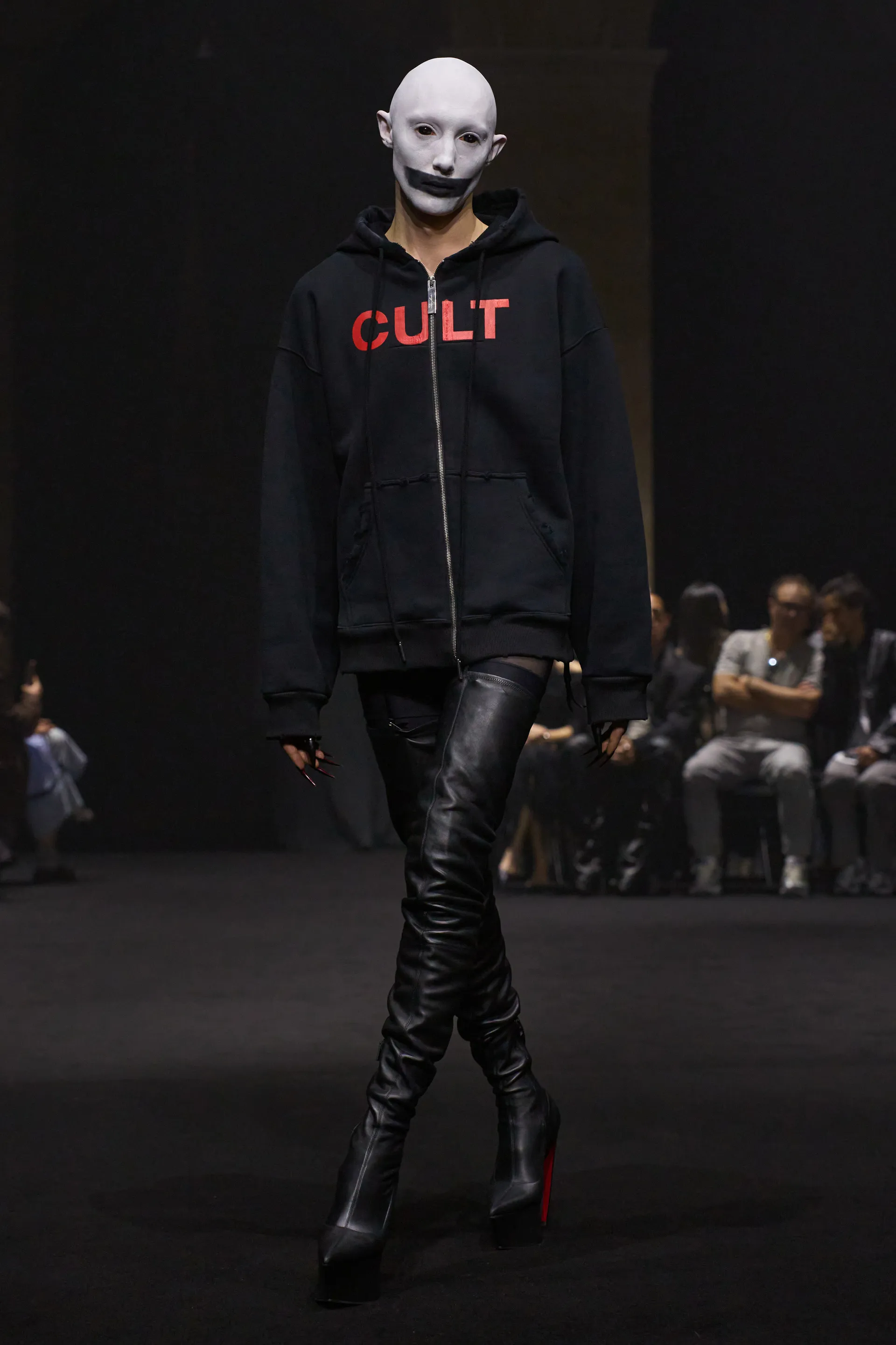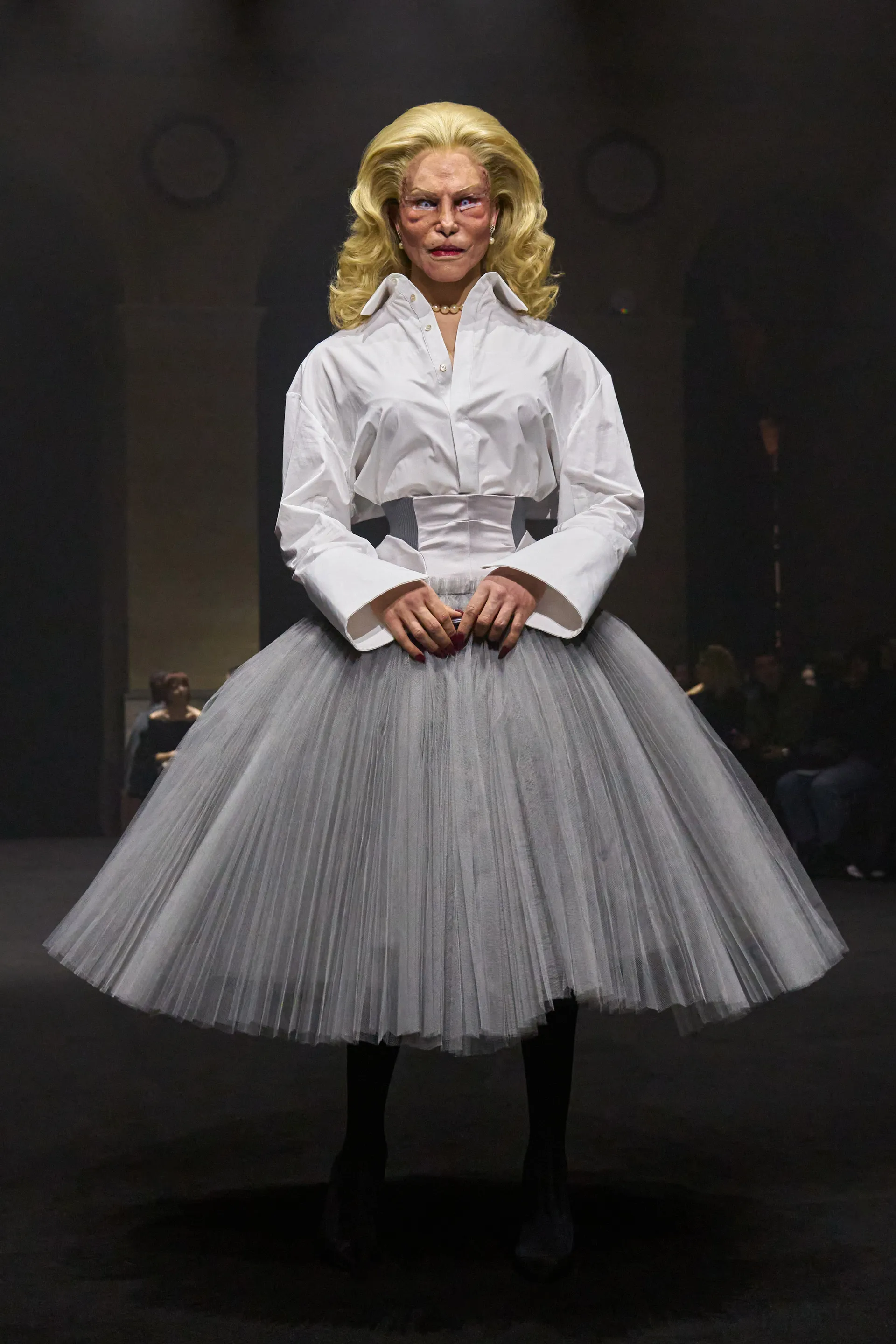 No cenário atual, a marca se mostrou neste último desfile de inverno com uma direção extremamente chocante e contra a inércia da relação moda e política.